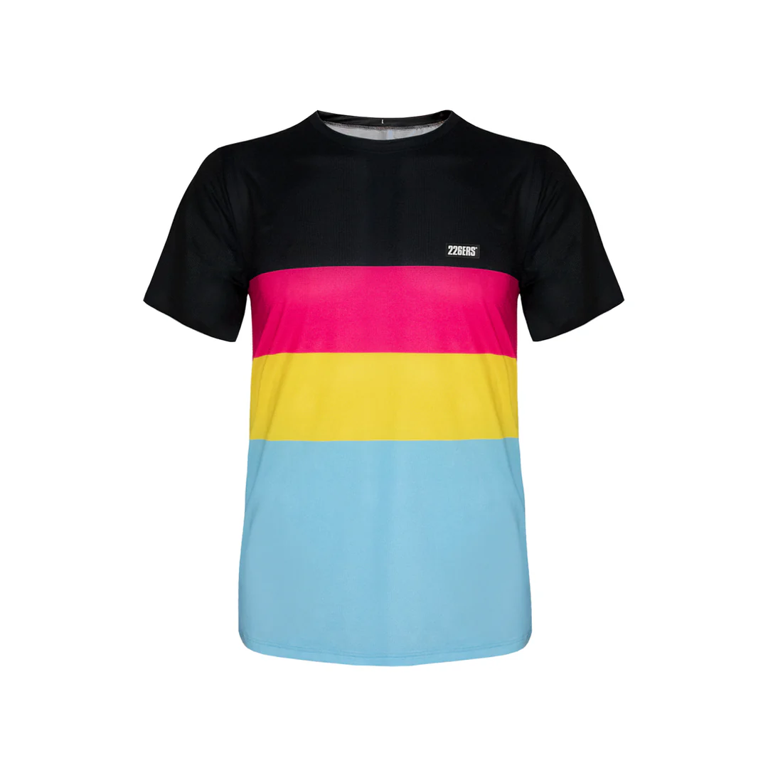 Combina 2 tejidos, el trasero de célula más abierta, que asegura una total expulsión de la humedad, dejando la piel seca y fresca y el tejido elástico bidirecciona.